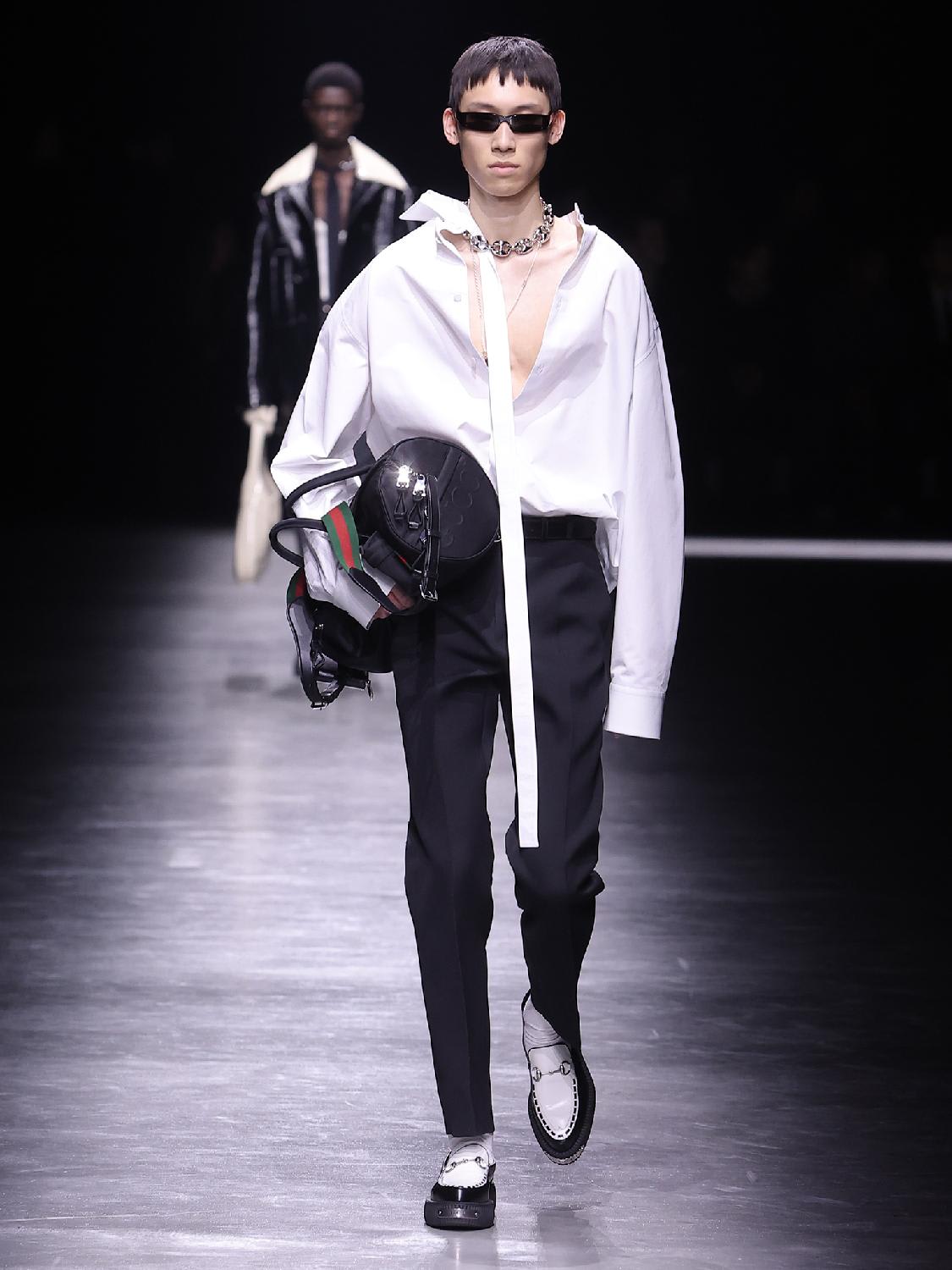 Creative director Sabato De Sarno’s menswear debut was a mirror image of what he had done for his first women’s collection last September: He had shorn off all the magpie excesses of Gucci’s previous creative director Alessandro Michele, making his own Gucci Girl a minimalist, in bold, if unornamented, sportswear.