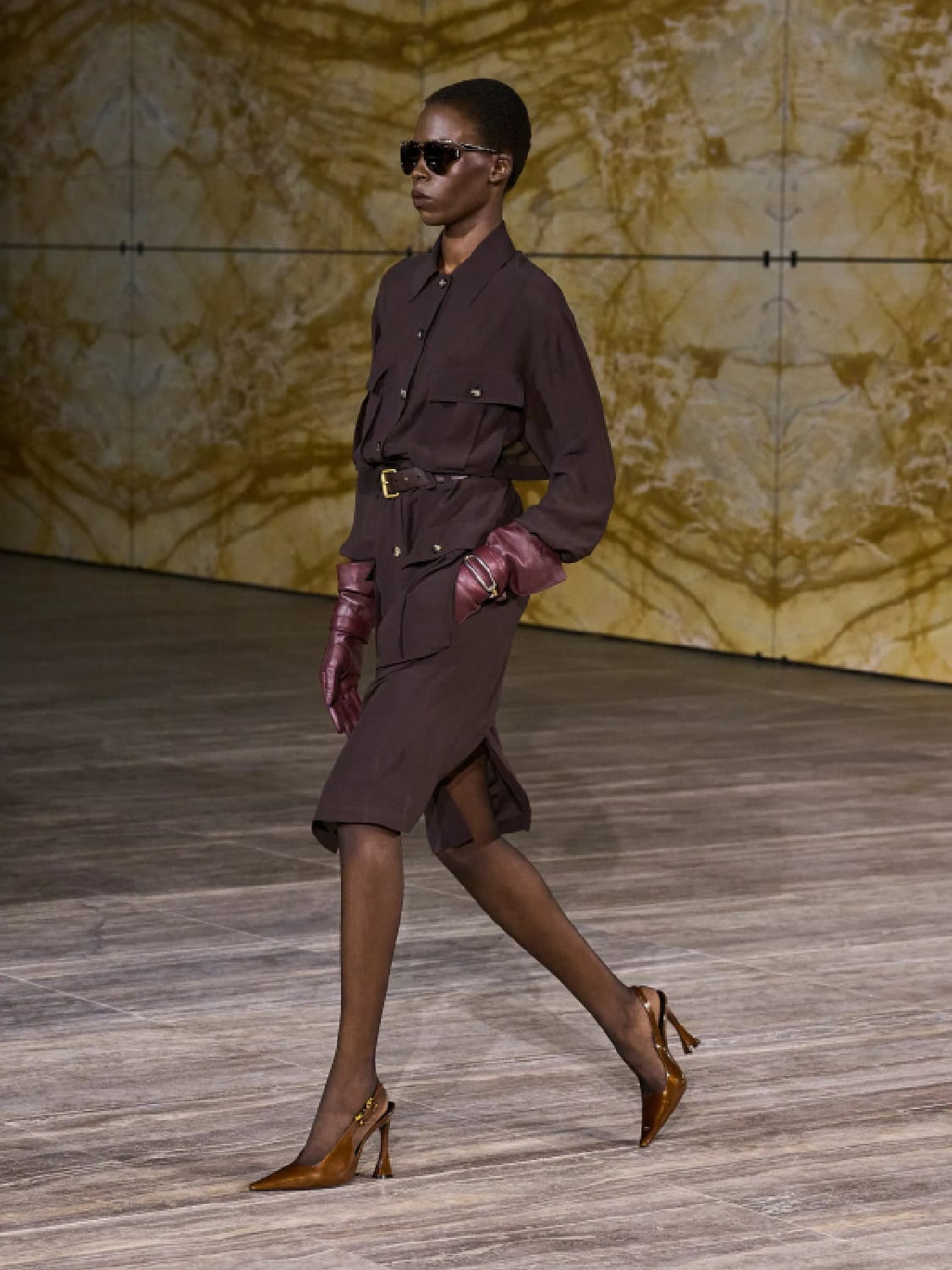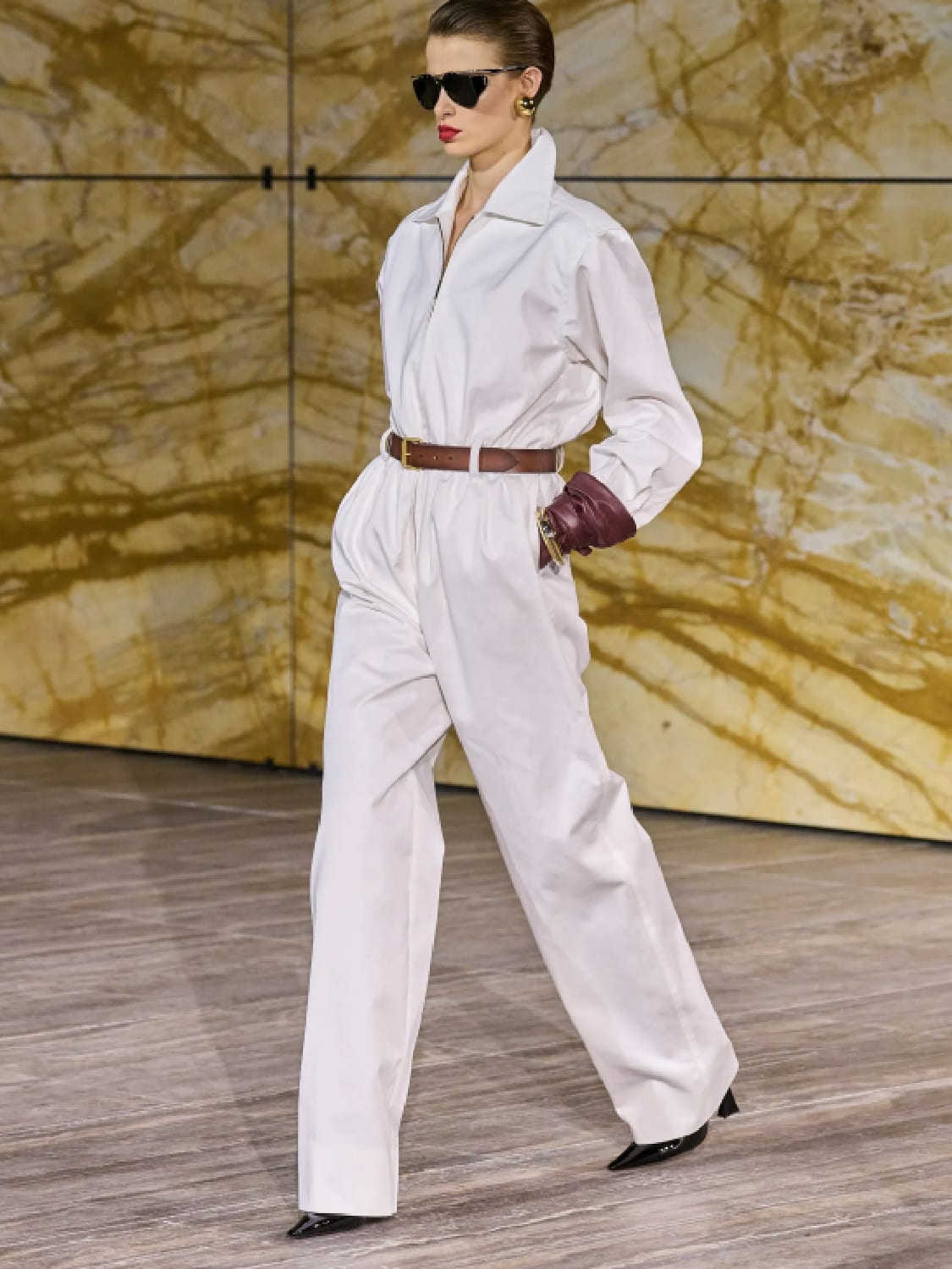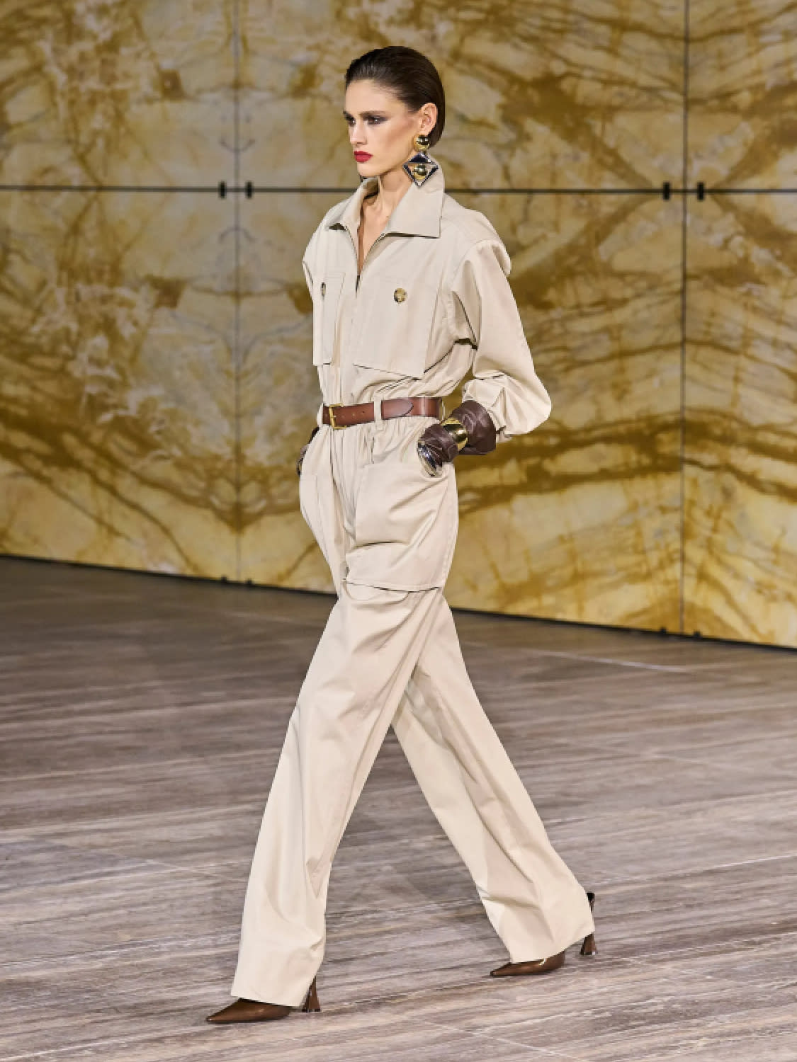 A more energetic sort of woman was shown by Anthony Vaccarello in a classic Saint Laurent showcase. Inspired by pioneer female aviators, this supremely elegant collection was grounded in utility and the safari jacket.