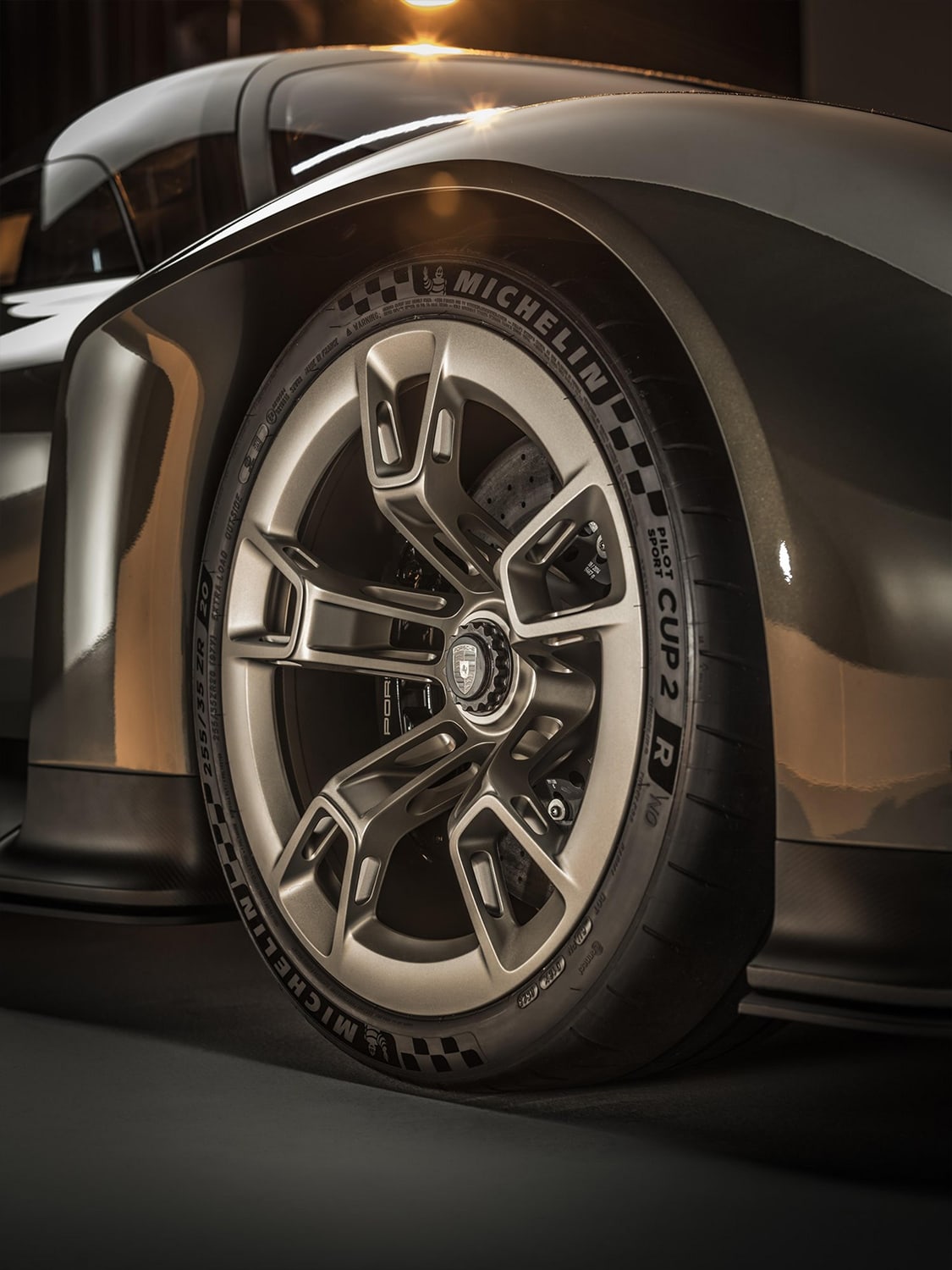 At the rear, a full-length light unit illuminated in bold red Porsche lettering makes for an arresting display. Meanwhile, sculptural rear light modules emerge, as if suspended in the air, from a modern support structure that extends across the entire width of the vehicle in four segments. While charging, the ‘E’ of the Porsche lettering pulsates white instead, thus adding a sense of intrigue to the multi-dimensional design.