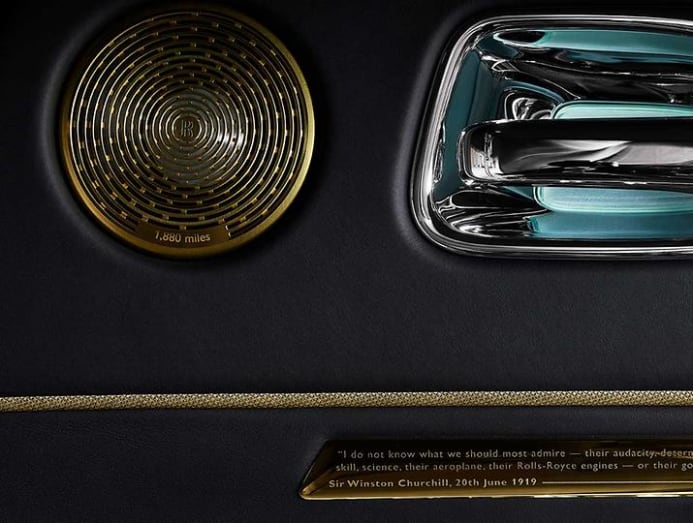 Brass also features on the interior, with the speaker covers made of the material, the brass-coloured embroidery on the headrests and a plaque on the driver’s side door inscribed with a quote from Winston Churchill on the duo’s achievement.