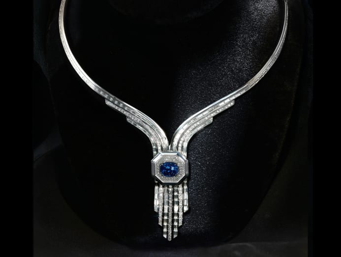 Also created specially for NMS’s fundraising event is this exquisite high jewellery necklace by homegrown fifth-generation jeweller BP de Silva. The unique diamond and sapphire piece is inspired by the Art Deco era, anchored by the concept of Guardianship as a tribute to those who have safeguarded Singapore’s cultural heritage. The deep hues of the main sapphire reflect the wisdom of generations past, while the diamonds shimmer like the embers of legacy.