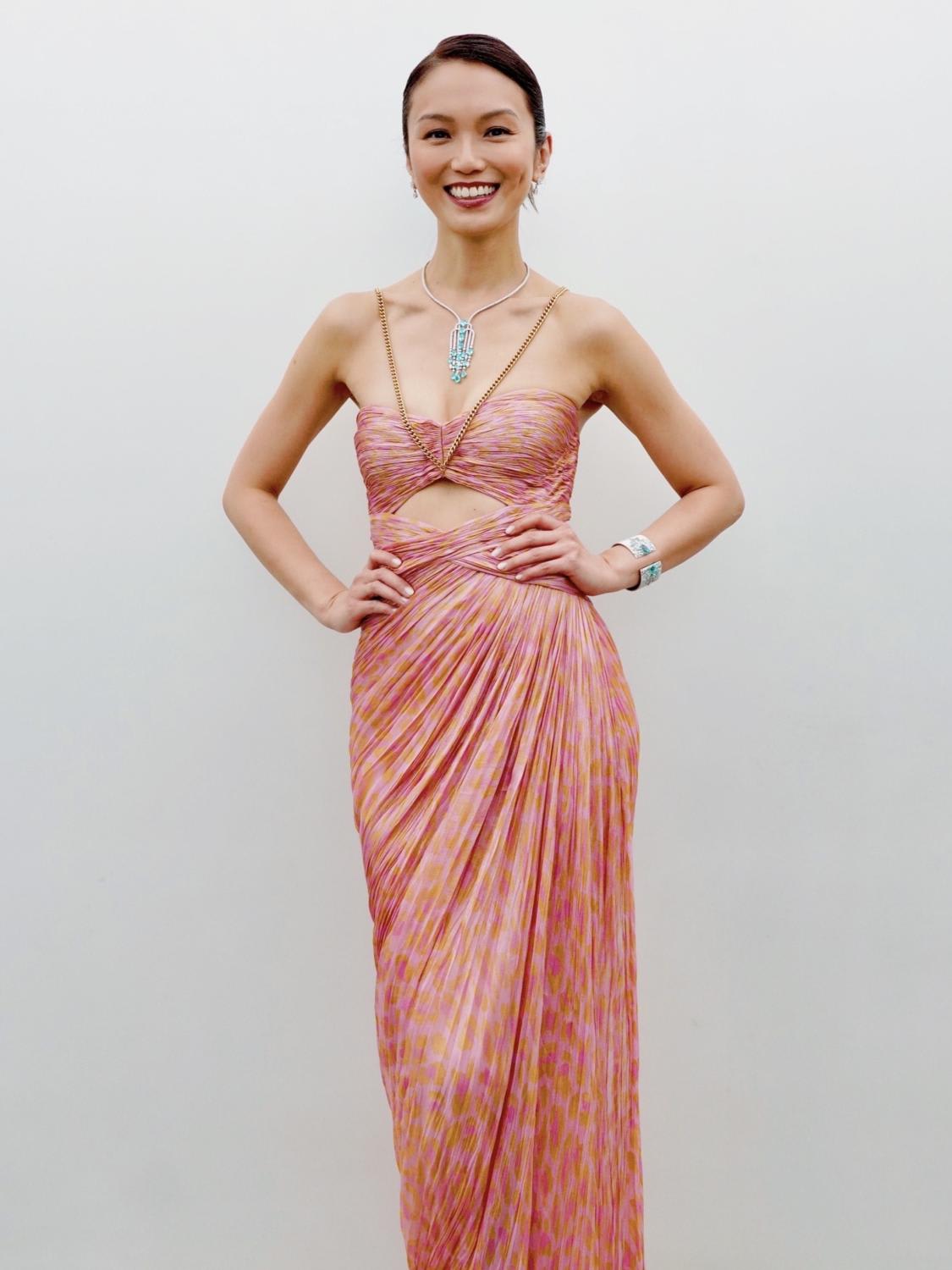 The night saw a dramatic change of outfit for Peh, who wore a Piaget Sunny Side Of Life necklace worth approximately S$1.1 million. The necklace is set with tourmalines and diamonds.