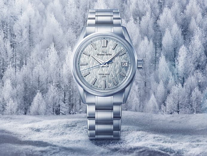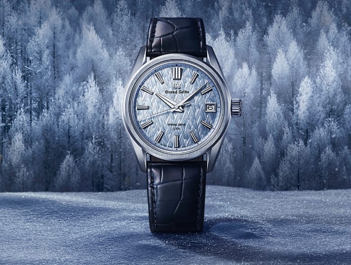 Two ultra-refined 37mm models showcase this innovation: The High-Intensity Titanium (SLGB003) and 80-piece platinum boutique exclusive (SLGB001). Rendered in pale blue hues that vary in tone and depth, their dials reflect the frost-covered trees of the Kirigamine Highlands east of the Shinshu Watch Studio, where all Grand Seiko Spring Drives are produced. The titanium version features a silver-tinged blue dial and tempered blue seconds hand, evoking ice forests under crisp skies. The platinum edition’s deeper blue dial offers a refined contrast to the smooth sweep of a silver-toned seconds hand.