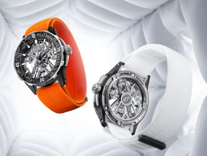 The secret lies in its skeletonised UN-374 manufacture calibre, which comprises 20 per cent material and 80 per cent air. When Ulysse Nardin designers removed material from the movement, they counterintuitively made it even stronger and more robust. This ingenious move was done by using the slender bridges to form triangles, a rigid shape often used in engineering and architecture to resist bending and warping. The bridges and other movement components are rendered in lightweight titanium that’s 90 per cent recycled, while the escapement features an ultra-light, upcycled silicon wafer that further reduces weight while ensuring precision.