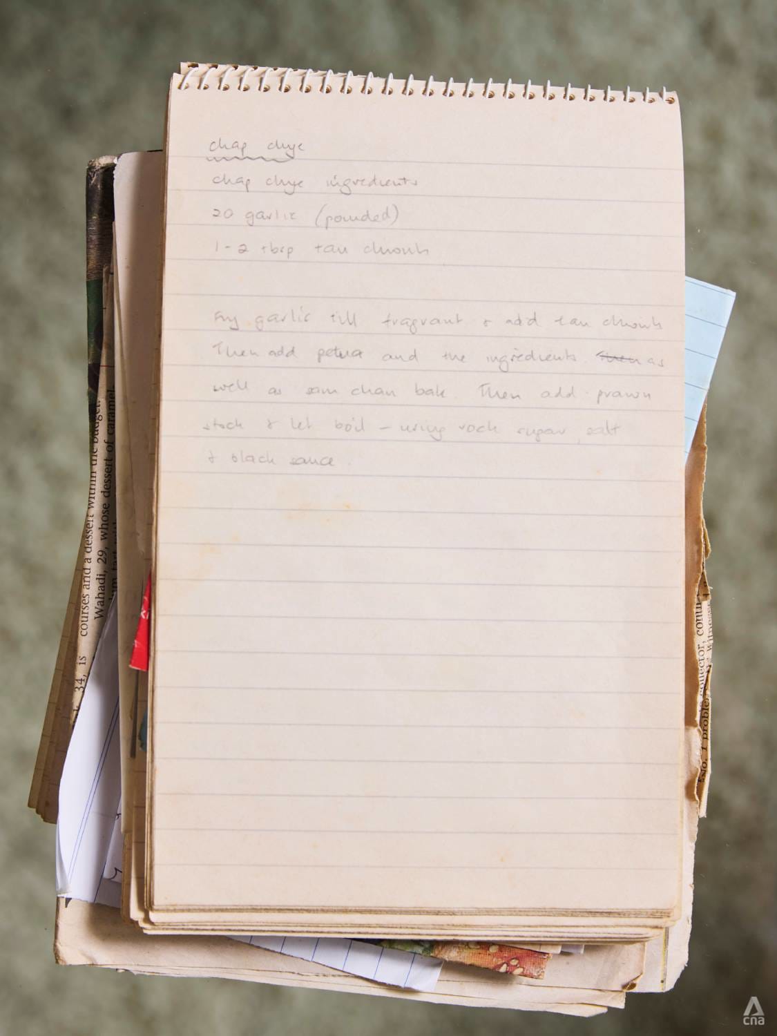 So much so that the preservation of Choo’s repertoire began almost by accident, years later when Lim lived in London. During Choo’s visits, mother and son would find themselves at the kitchen table, chatting over tea, and she would rattle off recipes from memory while Lim, almost absent-mindedly, began jotting them down on scraps of paper. It was painstaking deductive work. Recipes called for “20 cents of grated coconut”, say, or required the rempah to be fried till fragrant, with no further elaboration.