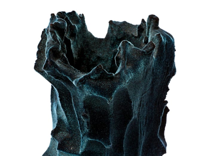 And while many often assume craftsmanship is about a single individual hand painstakingly creating something, collaboration is sometimes key. For Israeli artist Michal Fargo’s ceramic sculpture, the surface is covered by velvet-like fabric through a technique called “flocking”. For this, she collaborated with a third-generation master flocker.