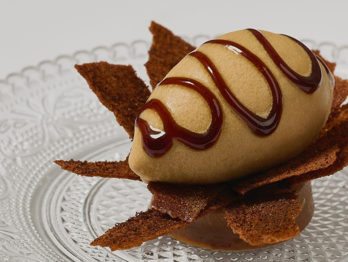 “It’s always my goal to step away from French techniques since we already use them so much (in our savoury courses), so I wanted to celebrate the potential of Thai ingredients in dessert as much as I can,” he added. Coconut milk, for example, plentiful across Thailand, is a worthy substitute for dairy milk since it is rich in fat. So too soy milk, rice milk, and roasted rice milk, all of which he utilises.