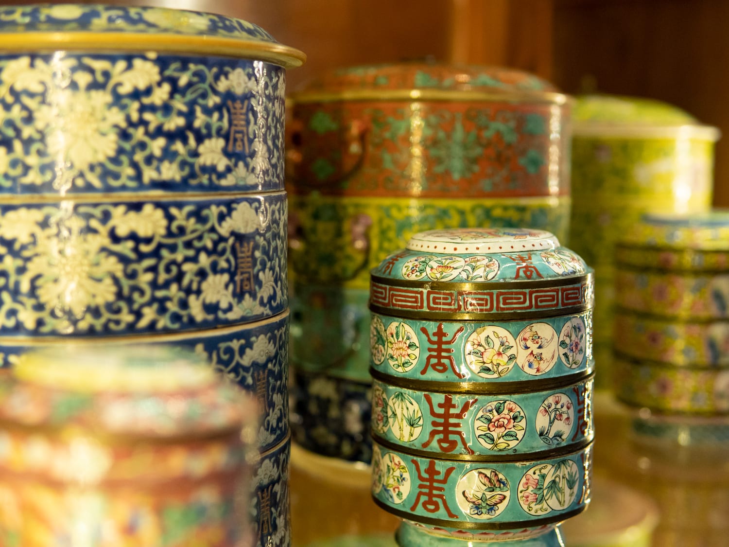 Ong’s personal collection focuses on kamchengs, tingkats (porcelain tiffin carriers) and sweetmeat trays. It’s remarkable to note that even though Ong only seriously started collecting when he returned to Penang, he has collected over 100 kamchengs, which he believes is one of the biggest of this particular genre in the world.