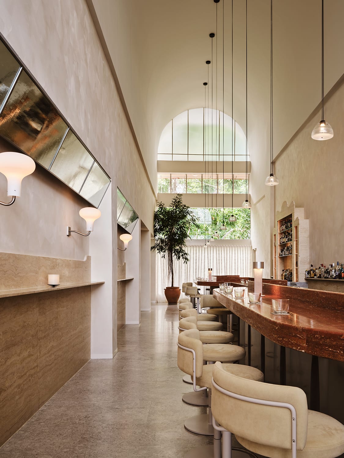 That sensibility – thoughtful, collaborative, quietly assured – defines Nice Projects, which Leong and McEwan founded in 2020. Their partnership with Singapore’s Lo & Behold Group has been particularly fruitful, yielding Odette, Claudine (housed in a restored 1930s chapel), Fico (inspired by Puglian masserias), Somma (a reimagined secondary school library), Le Bon Funk, and The Coconut Club. “They’re brilliant clients who are very thoughtful about what they want to do and recognise what is special about Singapore,” Leong said. “We have shared values and a design sensibility that we’ve developed over numerous projects.”