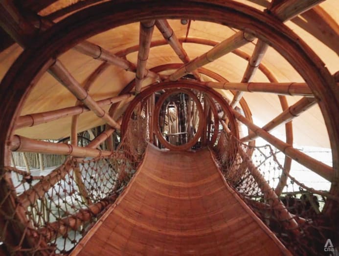 The latest accomplishment is the awe-inspiring Arc, a space used for sports activities. Built from intersecting 14m tall bamboo arches and spanning 19m wide – or more than three badminton courts – the impressive five-storey high structure is a feat in architectural engineering.
