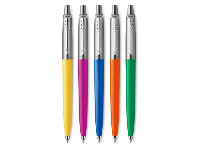 Let your writing glide smoothly on the pages of your journal with a classic Parker pen. Known for its high quality, sleek design and easy one-click use, Parker pens are refillable, saving you from constant replacements. This model is available in eight vibrant casing colours.