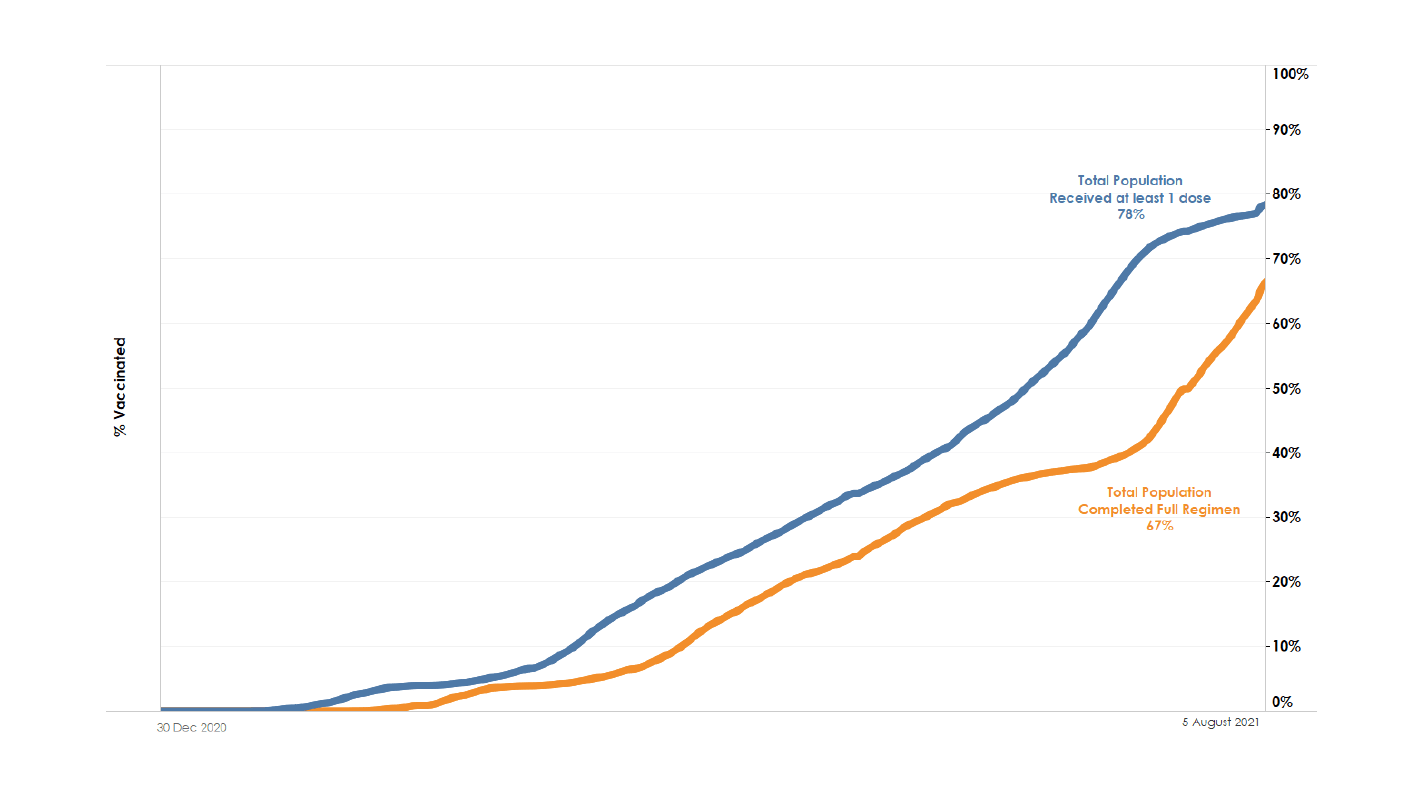 As of Thursday, 67 per cent of Singapore's population has completed their full vaccination regimen or received two doses of vaccines under the national vaccination programme. About 78 per cent have received at least one dose.