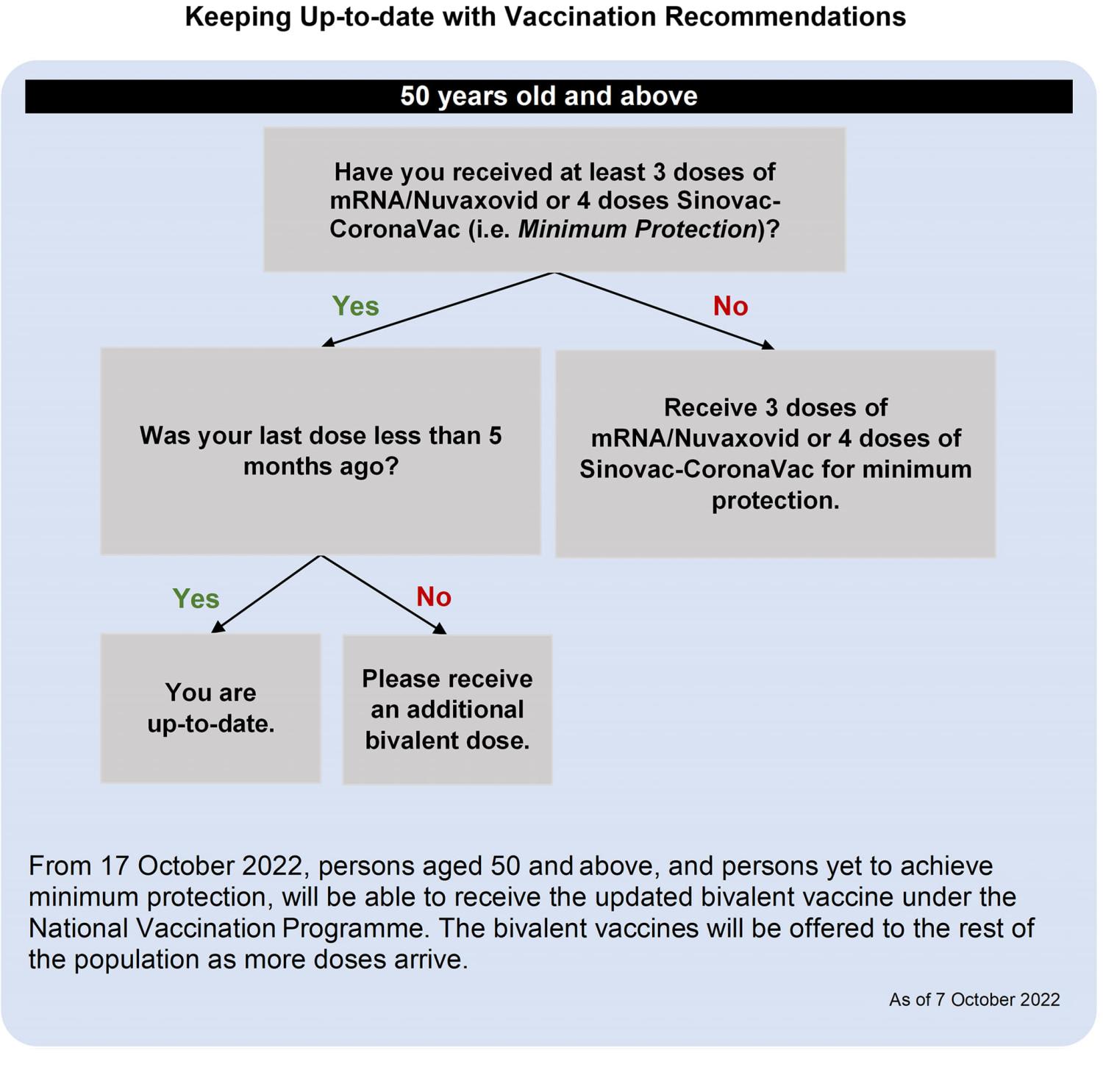 From Oct 17, those in this age group as well as those who have yet to achieve minimum protection will be able to receive the updated bivalent vaccine under the National Vaccination Programme.