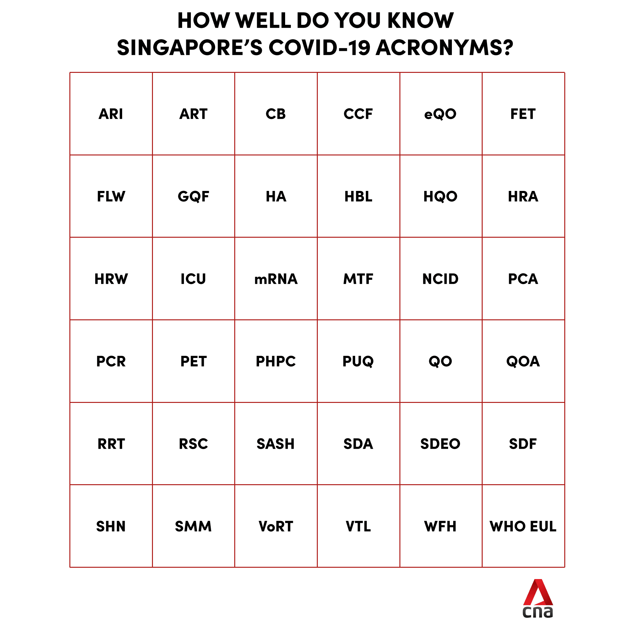 SINGAPORE: Since the battle against COVID-19 began in early 2020, an abundance of acronyms has entered common parlance in Singapore.