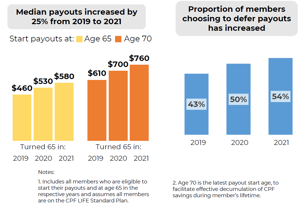 For those who chose to start receiving payouts at age 70, the median payout among these cohorts also grew from S$610 in 2019 to S$760 in 2021.