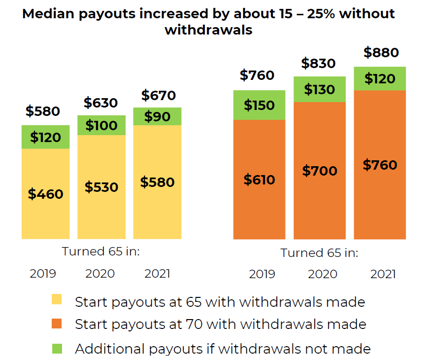 The Board highlighted that median payouts could be about 15 to 25 per cent higher if members did not make such withdrawals before hitting 65.