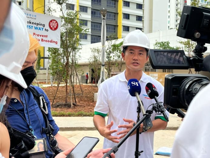 Mr Tan was speaking at a Housing Board estate construction site in Clementi, which is located within a dengue cluster, after observing how workers had stepped up measures, including increasing the frequency of inspections.
