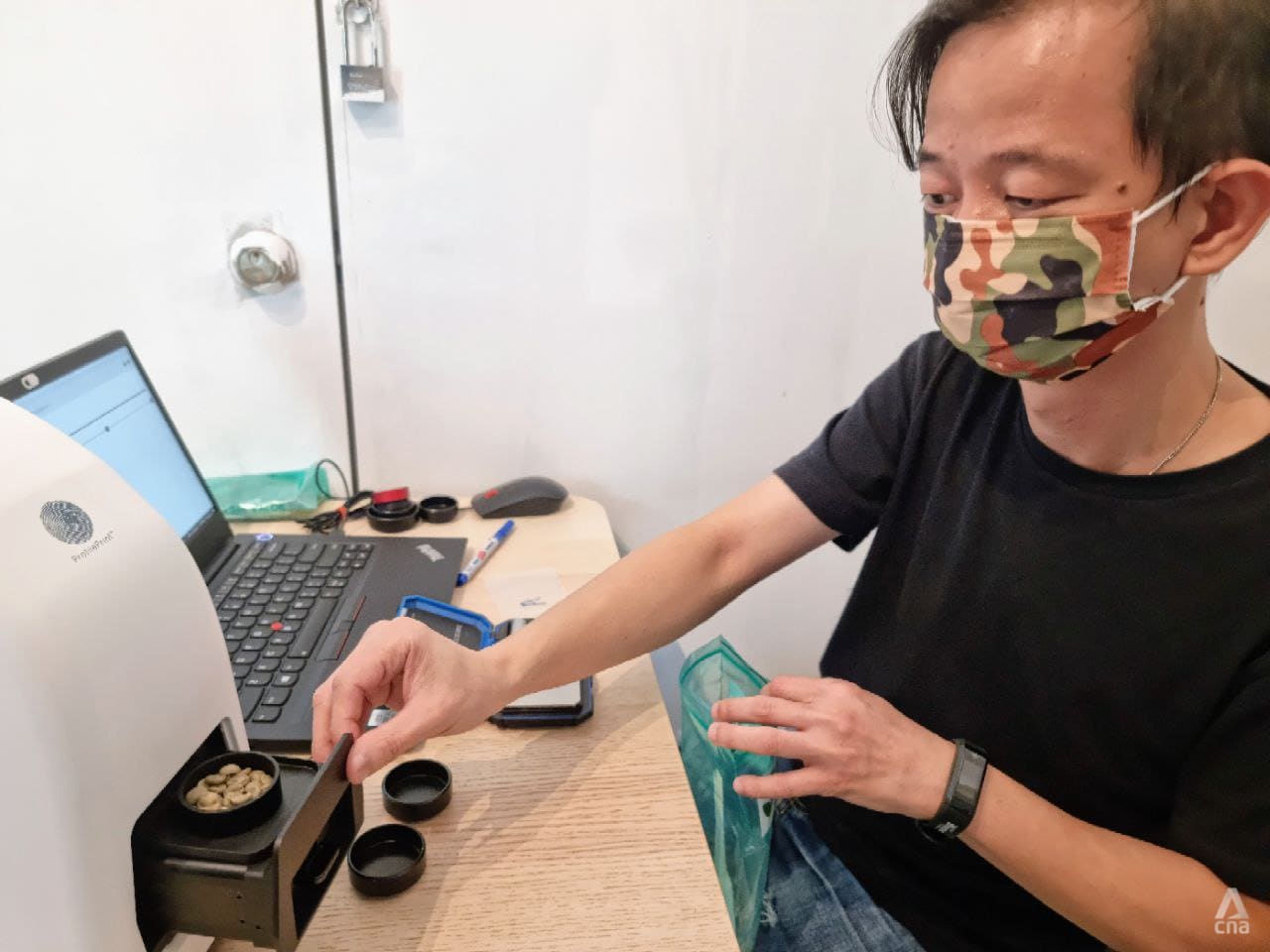 When CNA visited its office at the Enabling Village on Monday (Aug 16), Mr Low was grading coffee beans. This is a process that normally requires the beans to be roasted and brewed into cups of coffee before being sampled by professional tasters.