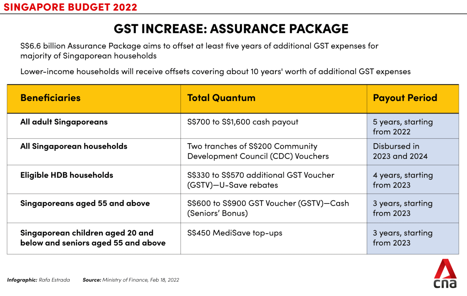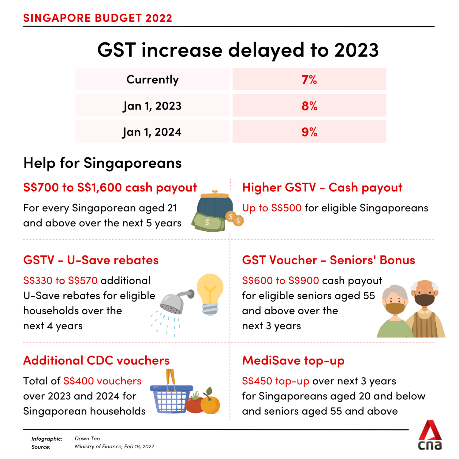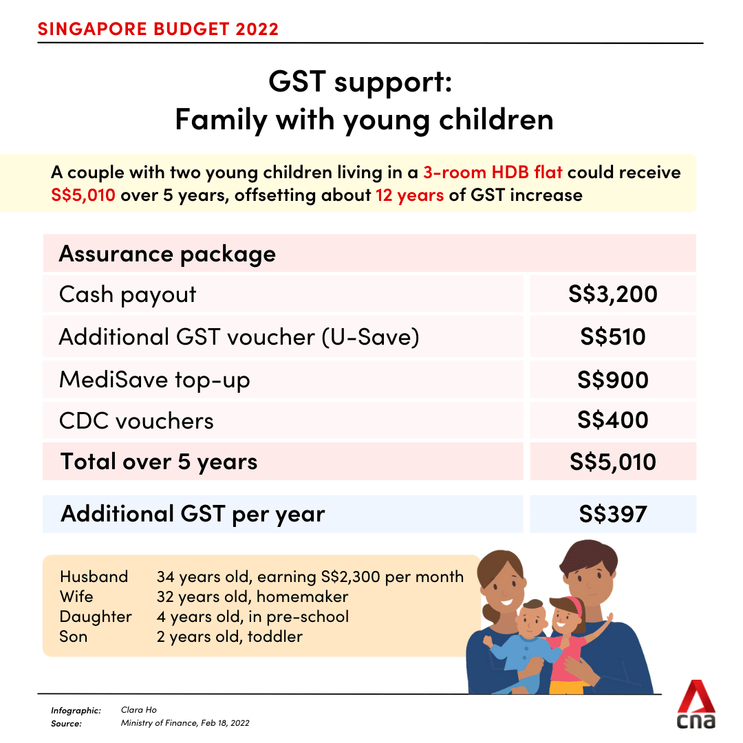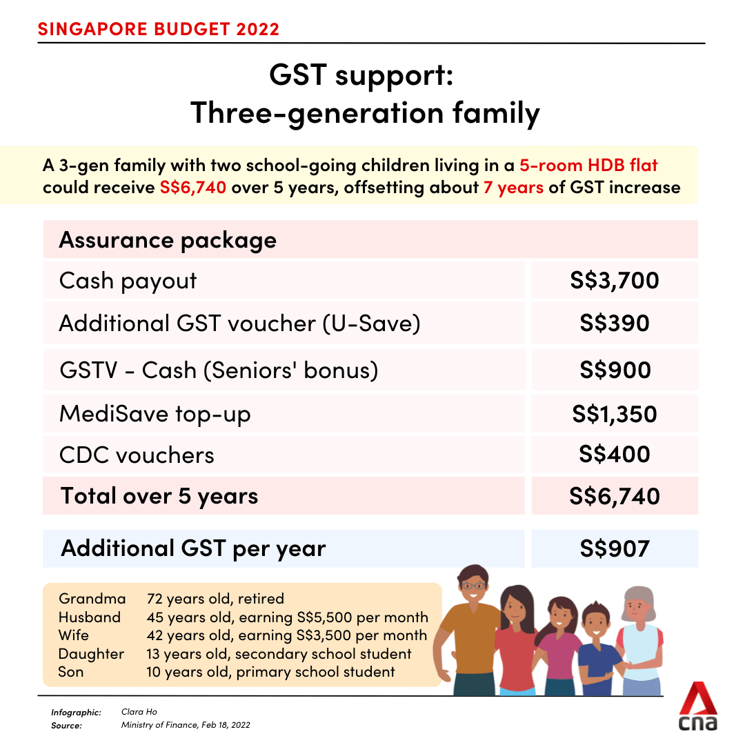 To cushion the impact of the GST hike, the Government will add S$640 million to the S$6 billion Assurance Package – announced in 2020 – and improve the GST Voucher (GSTV) scheme.