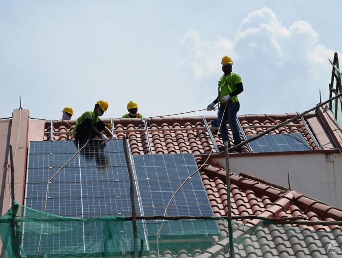 SINGAPORE: Under the searing sun, four workers were installing solar panels on the tiled roof of a house under construction in Serangoon Gardens.