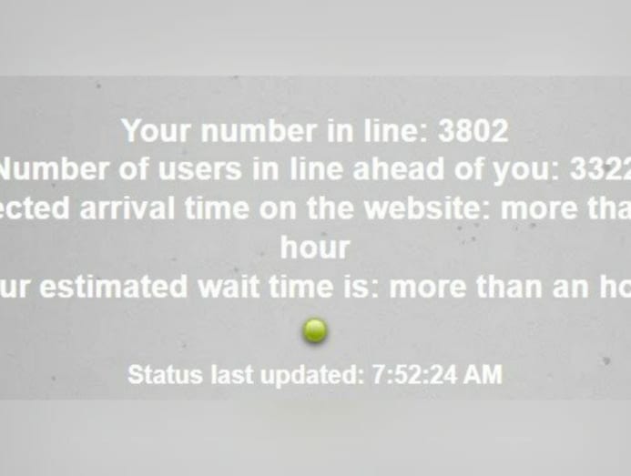 However, a subsequent check at 7.50am showed that the virtual waiting room had already taken effect, with those in line assigned queue numbers above 3,500.