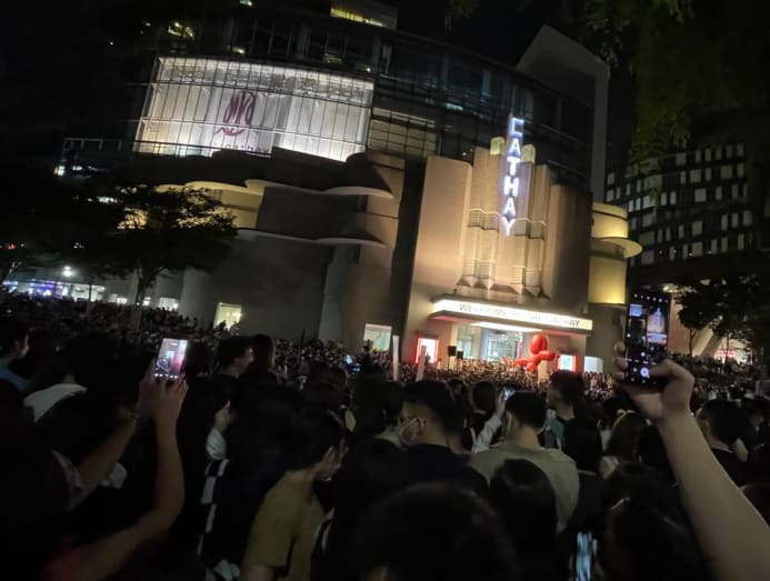 A huge crowd is gathered outside The Cathay on Saturday, Jun 25, 2022. (Photo: CNA/Eileen Chew)