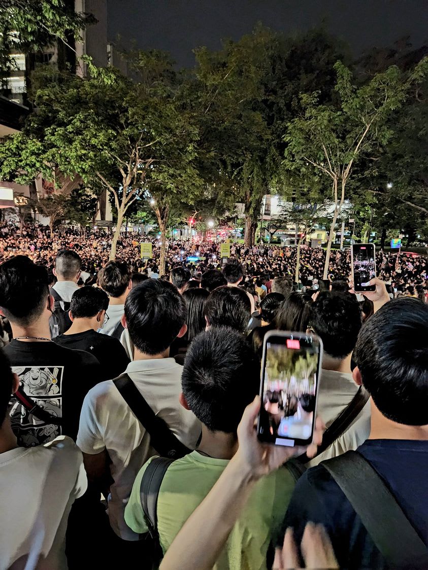 Over at another part of the crowd, two colleagues Mr Daniel Lam and Mr Jeremy Lim, were also at The Cathay to support Mr Ng.