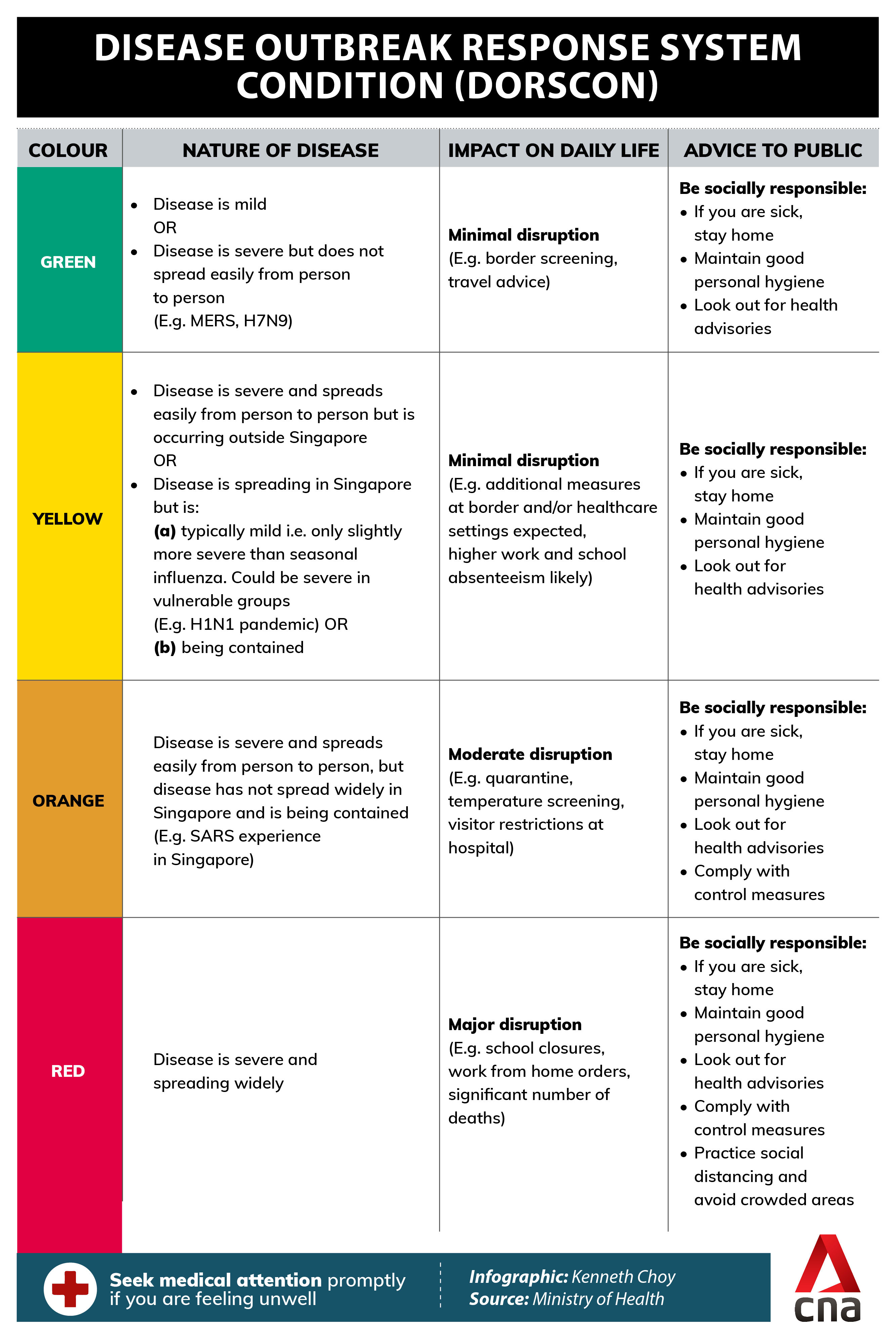 Since April last year, Singapore has also maintained a Yellow status - the second lowest tier - under its Disease Outbreak Response System Condition (DORSCON) framework.