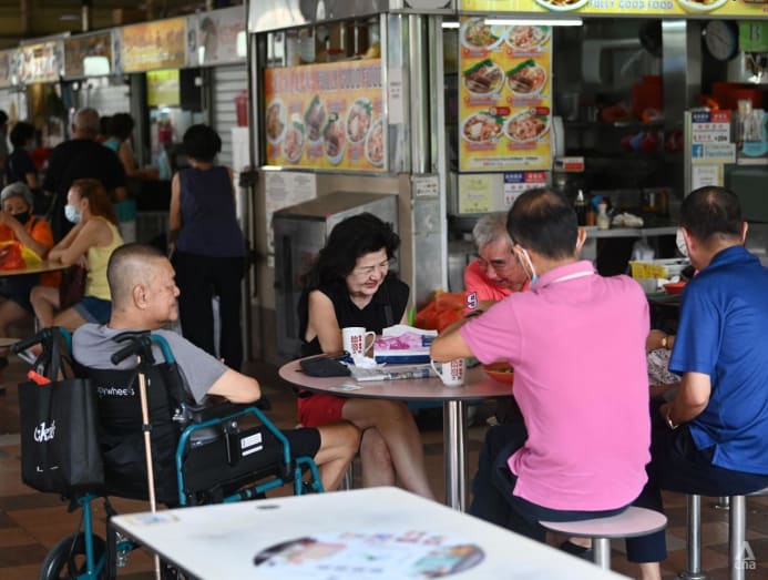 Where there used to be tape-markings blocking off seats for five people, some tables at hawker centres and coffee shops are now too small for the permitted groups of 10.