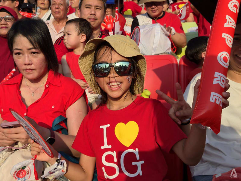 The audience at the National Day Parade 2024 Preview 1 show on Jul 27, 2024, cheering during the military march-in (Photo: CNA/Jeremy Long, shot on a Samsung Galaxy Z Flip6)