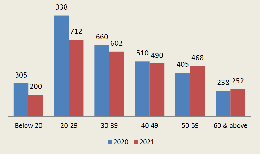 About 33 per cent of all abusers arrested last year were below 30 – those in the 20 to 29 age group continued to form the largest group.