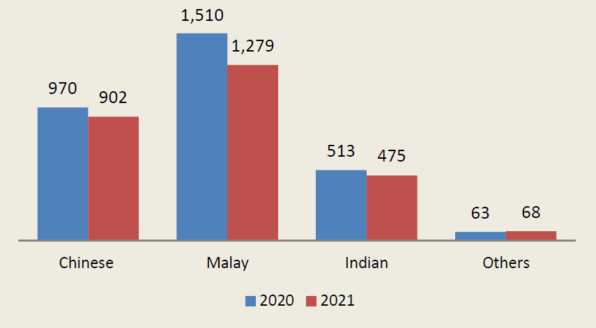 According to the report, the number of Chinese, Malay and Indian drug abusers decreased last year, with the proportion by ethnic group similar to the previous year.