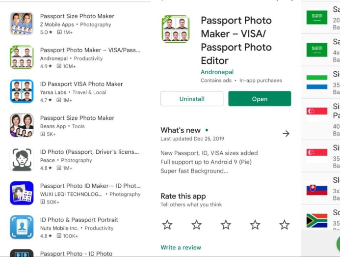 Some of these apps can be found on the Android Play Store or Apple App Store by searching "Singapore Passport", "Singapore IC" and "Photo".