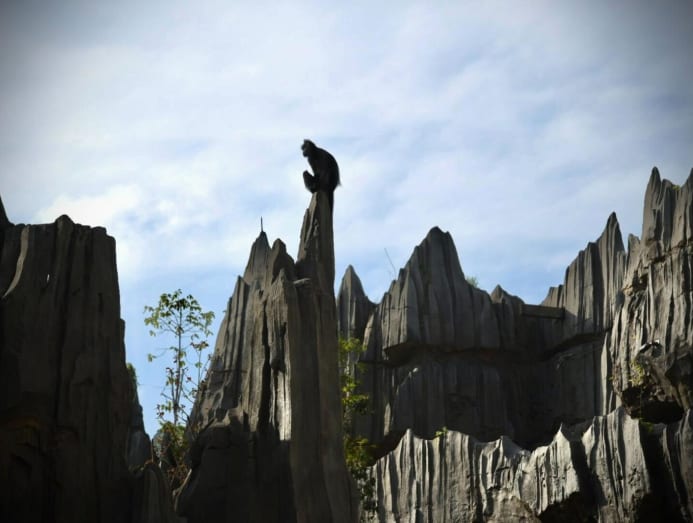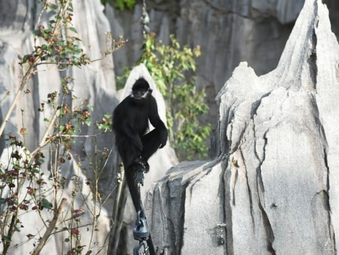 A viewing gallery and a langur spotted at The Karsts at Rainforest Wild Asia. (Photos: CNA/Lauren Chian)