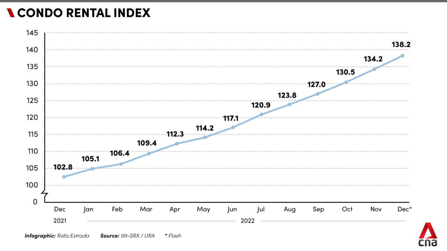Singapore's buoyant rental market shows no signs of slowing down, with rents rising further in the last quarter of 2022.