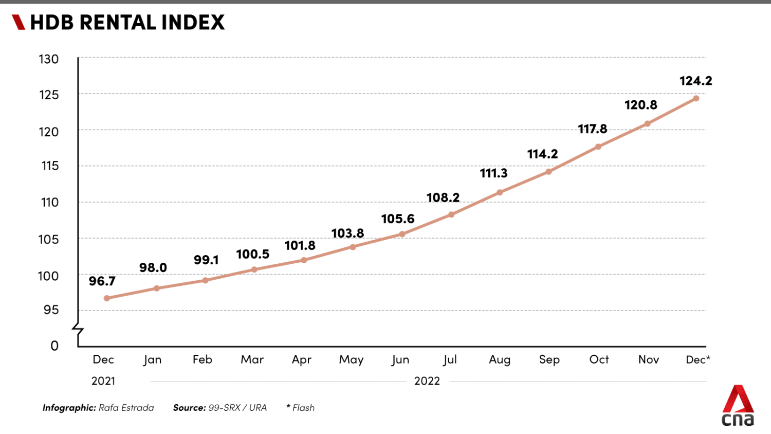 The URA Rental Index, published earlier this month, showed an overall increase of nearly 30 per cent last year – a 15-year high.