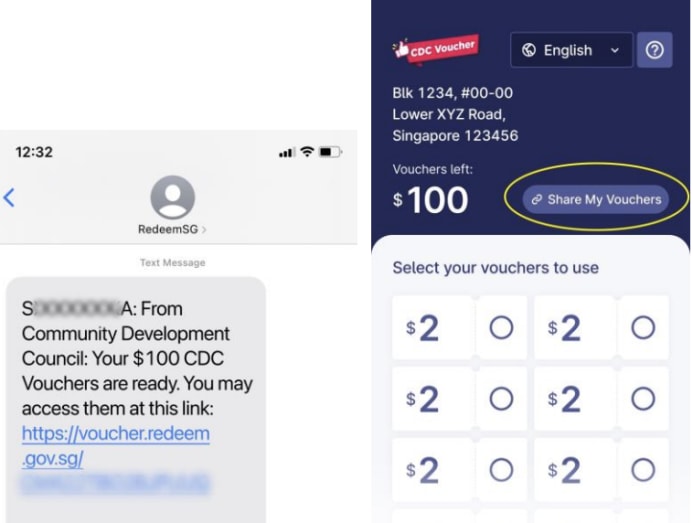 You can also share the voucher link with your household members. Click on the “Share My Vouchers” button on the voucher redemption website to copy the unique voucher link, and paste it onto messaging apps such as Whatsapp or Telegram. Anyone with the link will be able to access the voucher.