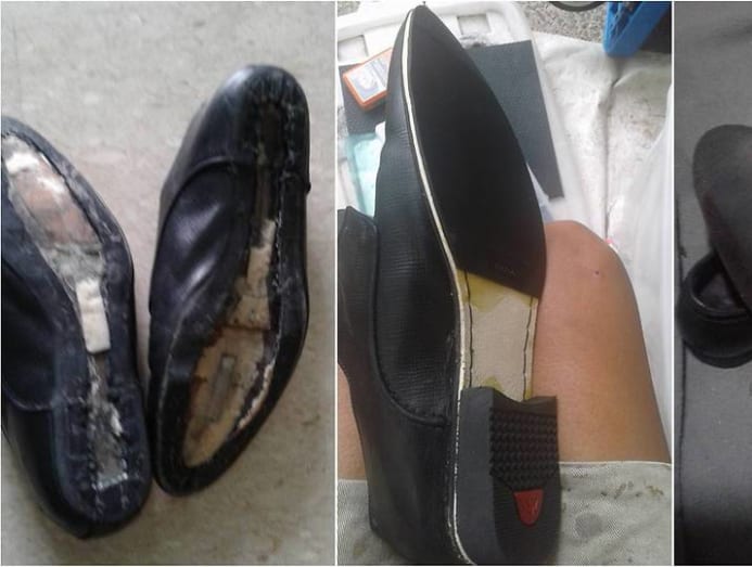 For S$12, he had glued on new non-slip soles, then painstakingly cut them down to size with a sharp razor. He let me scrutinise them: No rough edges.