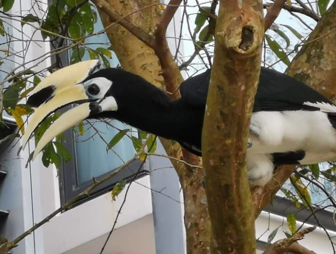 SINGAPORE: On the way to dinner one Sunday evening, this journalist spotted five hornbills flitting across a road junction to rest in some trees - as much a part of the city landscape as the Velocity@Novena Square mall behind them and the lanes of traffic below.