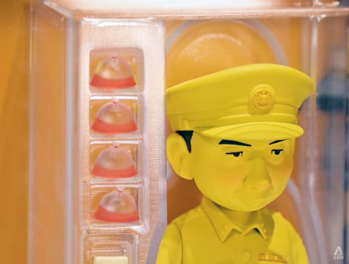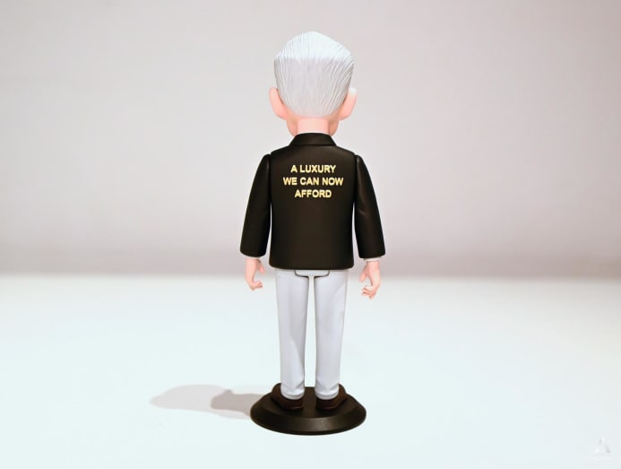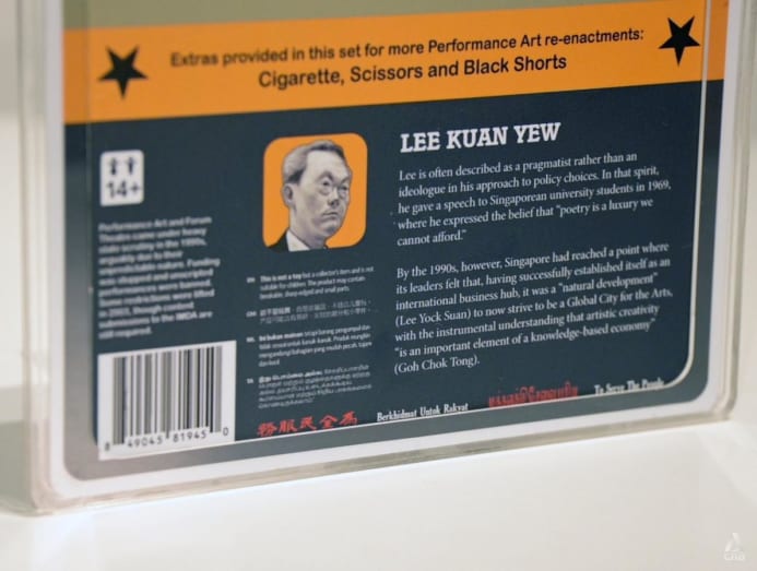 Take the Lee Kuan Yew figurine, for instance. Even standing at 16cm, the late prime minister's likeness, with his characteristic furrowed brows, manages to command respect. The figurine dons a black jacket. There is nothing out of the ordinary – from the front.