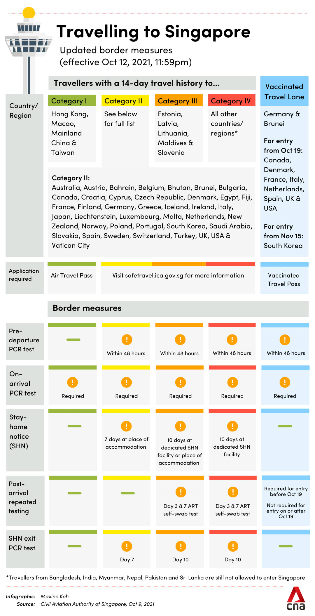 Singapore is currently classified as a “Yellow” or lower-risk country and the rules may change if the category changes.