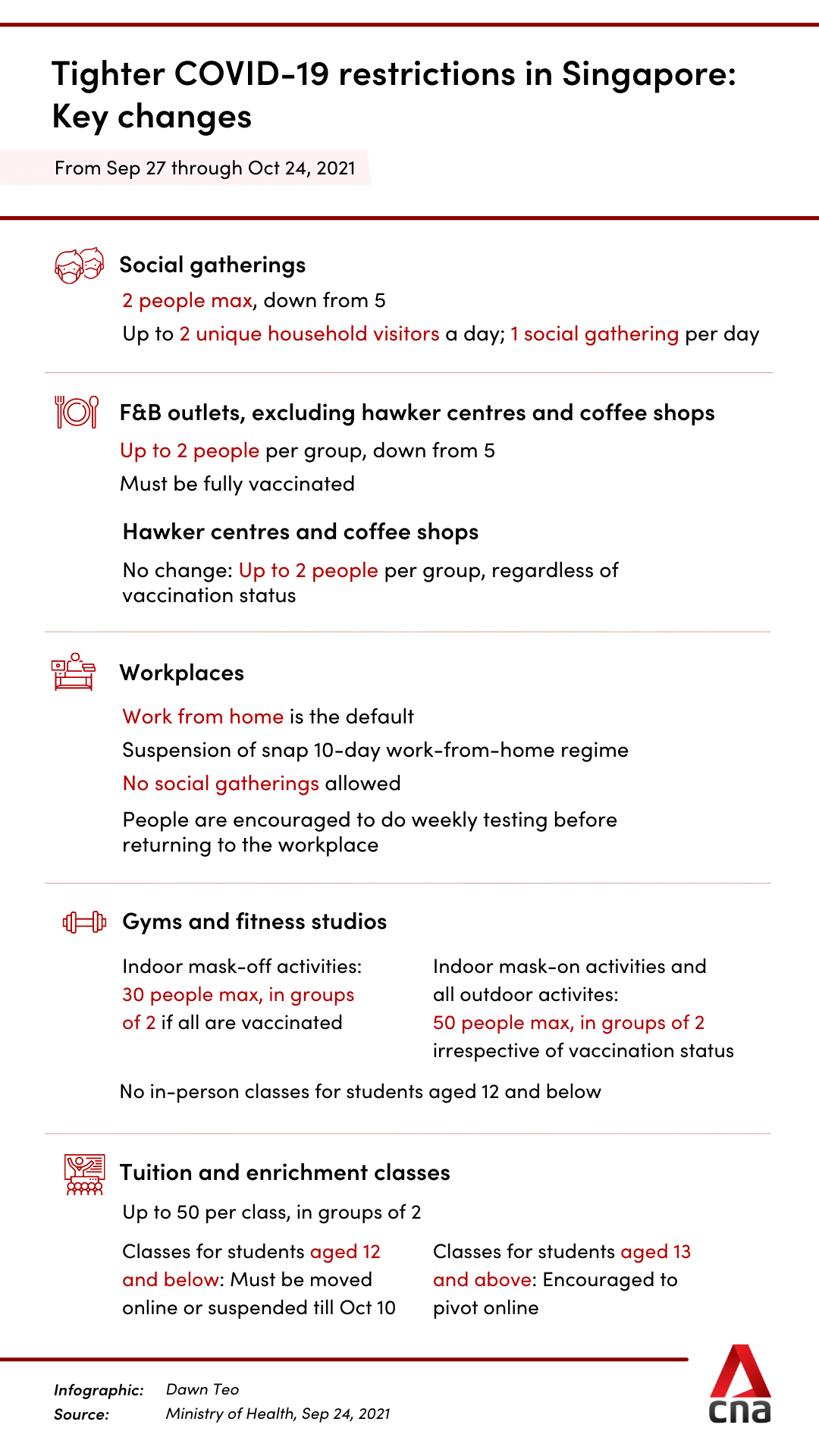 "We acknowledge that wedding couples have faced significant uncertainties over the past few months. Hence, as a special concession, wedding receptions may be allowed to continue with up to 250 attendees if all are fully vaccinated, and with a group size of up to 5 persons per table," added MOH.