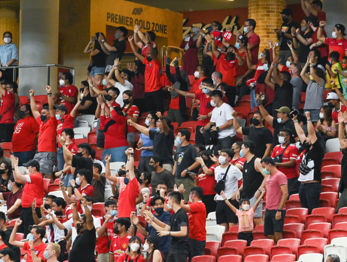Despite having to keep their masks and be seated a metre apart, the energy of the crowd was not dampened: Fans could be seen excitedly cheering, waving banners and Singapore flags, and chanting enthusiastically to support the Lions.