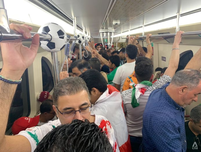 Football fans at one of Doha's metro stations. (Photo: CNA/Matthew Mohan)