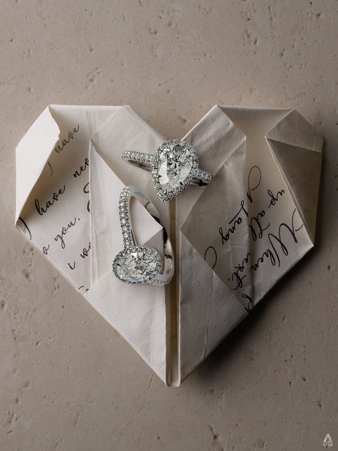 The pear shape and oval shape are arguably two of the more popular choices among fancy-cut diamonds. There’s no surprise why – while not your typical round solitaire, they’re still elegant with that unmistakable hint of modern edge. Seen here are two extravagant examples of these shapes, the objects of any bride-to-be’s desire, surely.