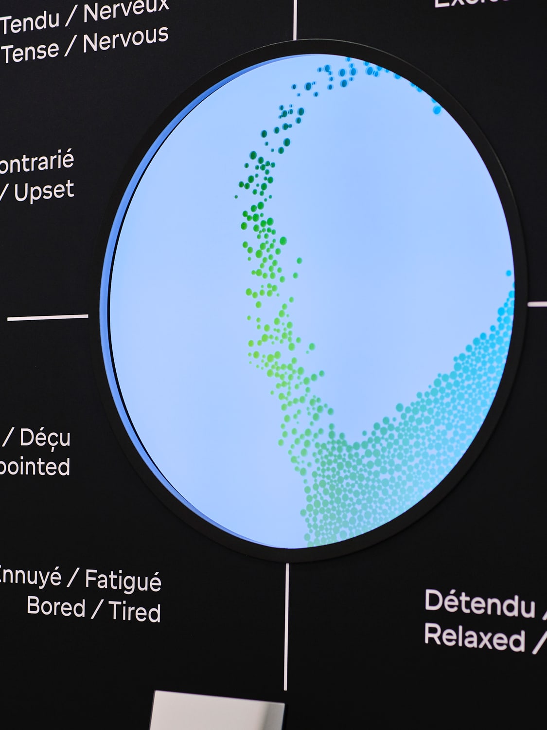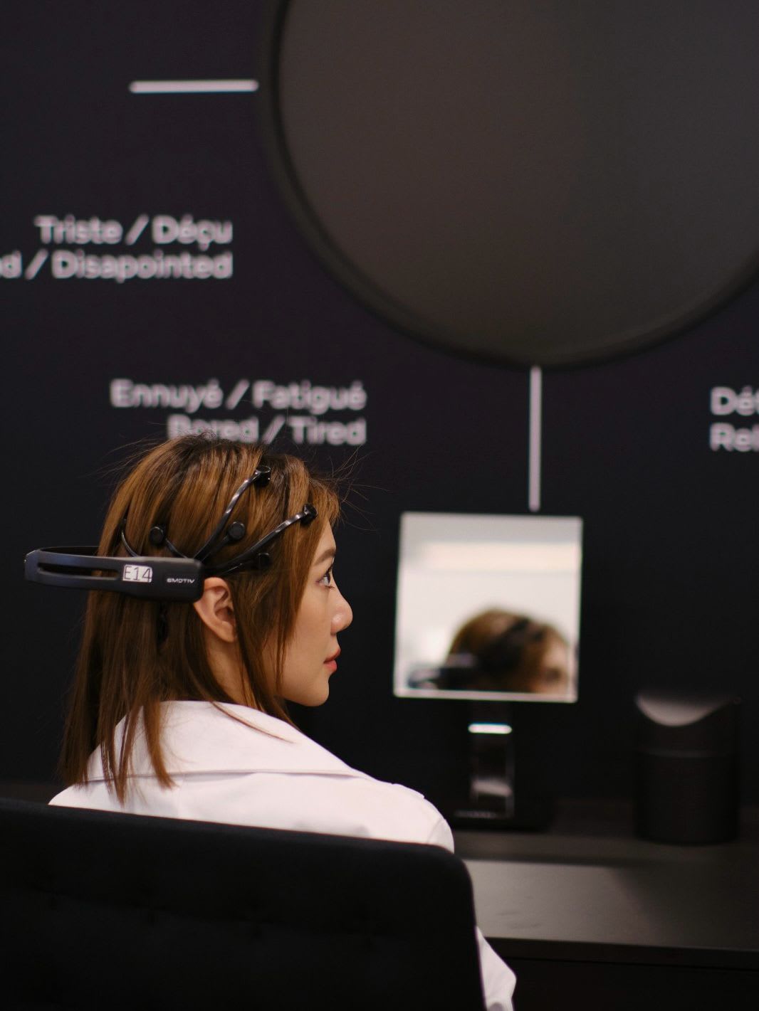 They were given two products to experiment with, one of which was a red lipstick. As Participant A swatched the lipstick on her hand, I watched as the dots on the screen moved to show her satisfaction with the product. The dots on Participant B’s screen however, migrated to show “upset” and “disappointed”, despite her insistence that she did, in fact, like the lipstick. That goes to show just how incredibly sensitive the device is. She could have been jetlagged and tired, or possibly nervous at the attention, explained Marie-Heloise Bardel, head of the neurosciences department at Chanel fragrance and beauty.