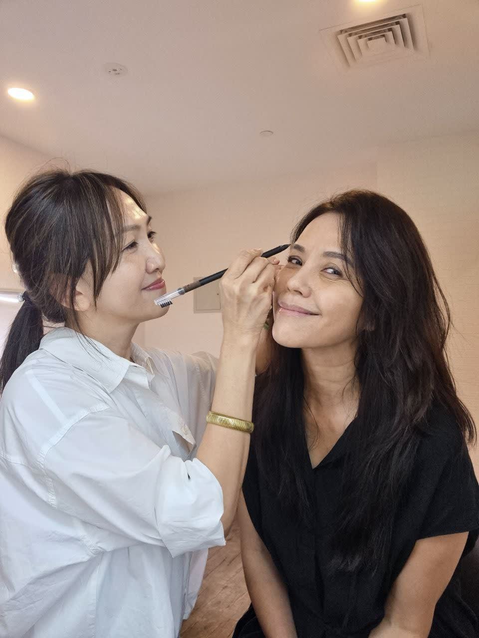 Eyebrow embroiderer to the stars, Bernice with her famous clients Jeanette Aw and Zoe Tay. (Photo: Bernice Wong)