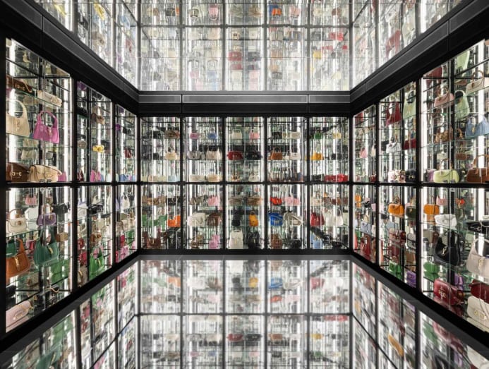 Here, one gets treated to a display of over 200 versions of these handbags that have been interpreted by the brand’s various creative directors, set amid a stunning set-up put together with mirrored shelves.