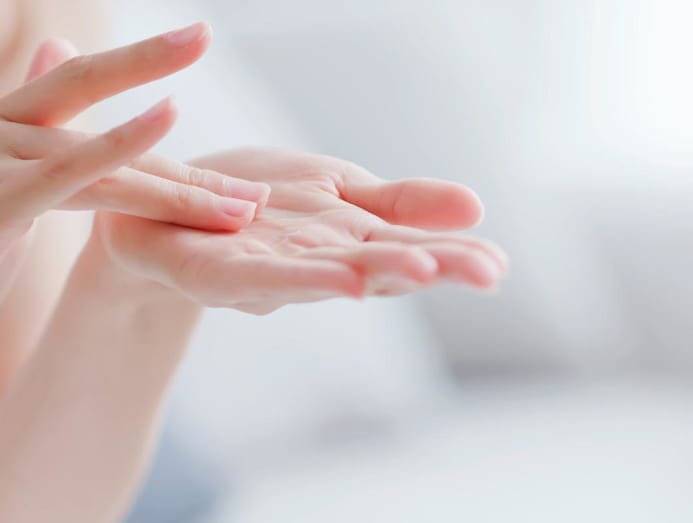 Repeated exposure to harsh soaps and alcohol-based hand sanitisers can strip moisture from the skin of our hands. To make matters worse, signs of ageing – like fine lines, wrinkles and spots – tend to show up on dry hands sooner, so Lu stressed the importance of moisturising.