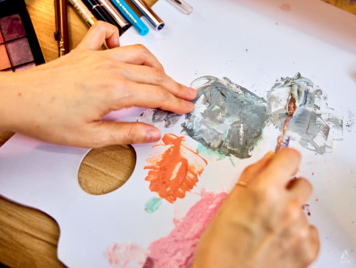 Jeanette Aw’s makeup artist, Elain Lim, creates paintings from expired makeup